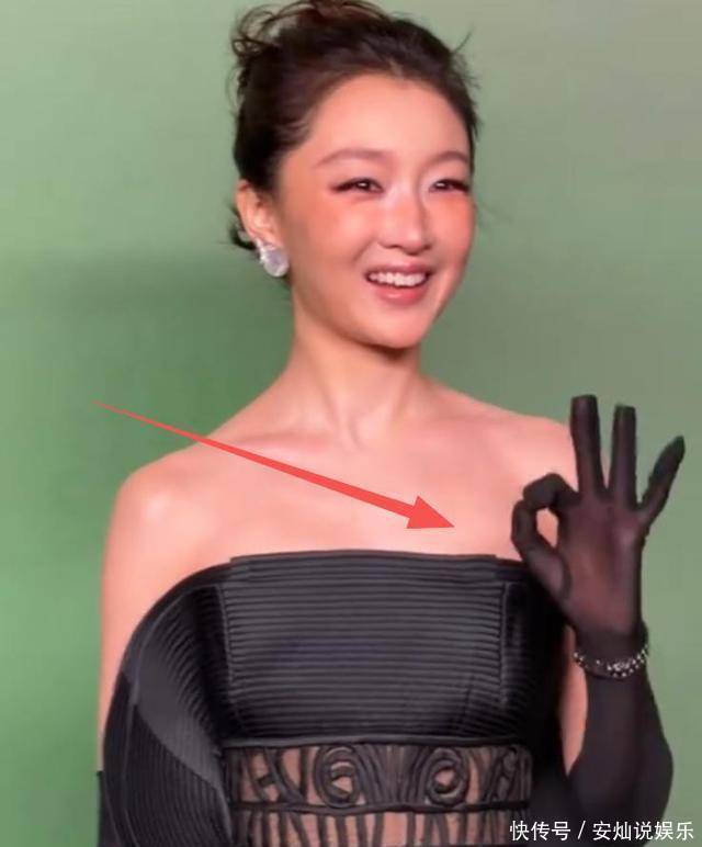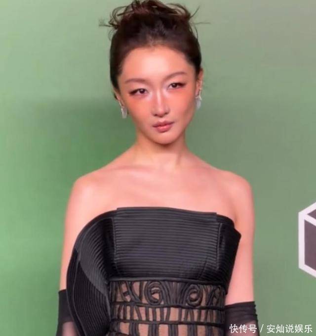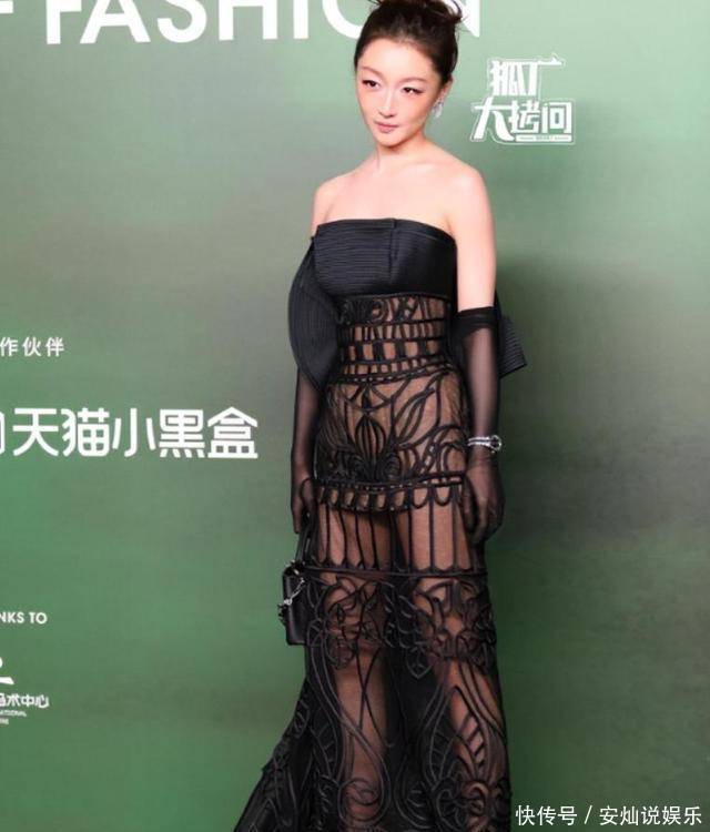 最让人议论纷纷的是她那件裙子,是一件黑色的抹胸透视裙。抹胸的地方很小,只能勉强遮住重点部位,肚子往下都是透明的,就一层肉色的内衬加一层黑纱。从远处看,这裙子非但没让她显得娇小好看,反而让她的腰看起来很粗,整个身材直上直下,跟个“H”形似的,一点线条感都没有。更尴尬的是,红毯上灯光一打,透视部分下面的三角区看得一清二楚,让人感觉很不舒服。再加上她的妆也化得不好,底妆暗沉,眼影脏兮兮的,整个人看着很油腻,跟性感完全不沾边。